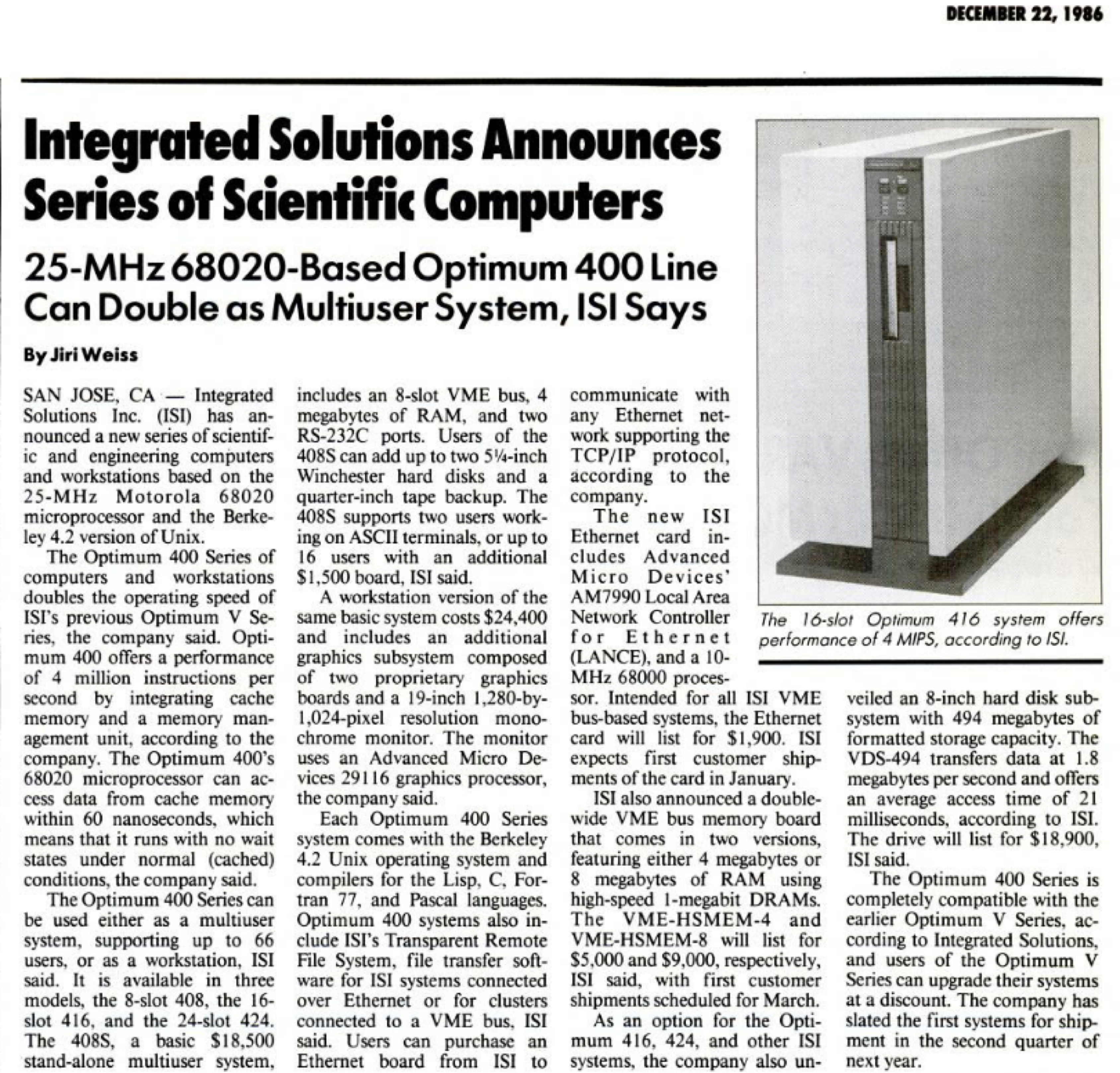 On the right is an article about an ISI workstation (click for full-size). If anyone has more information on this, I'd love to see it (or of course the original GEOS source code).